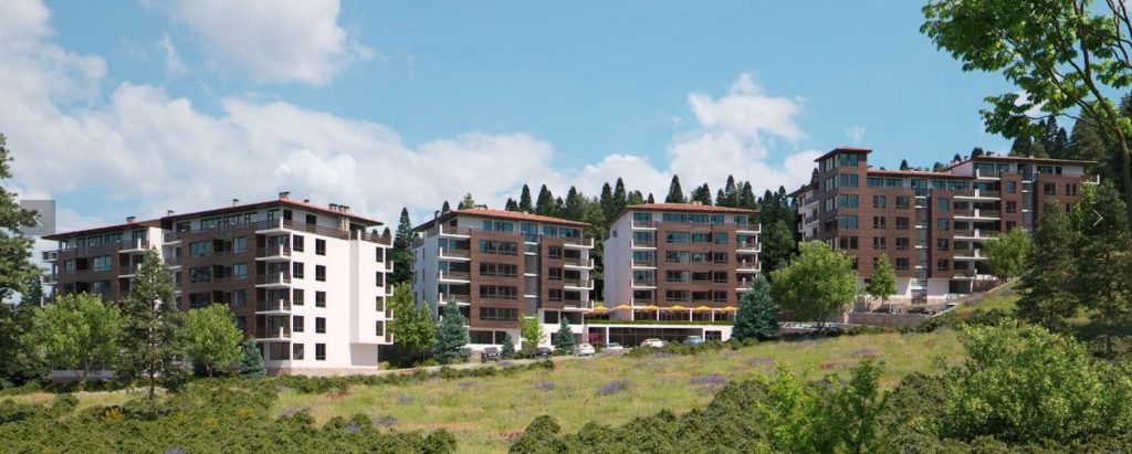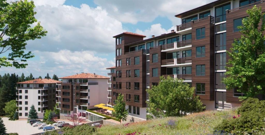 Комплексът се състои от два корпуса сгради с апартаменти, всяка от които с два входа, както и от самостоятелна сграда представляваща хотел с басейн и много обслужващи и сервизни помещения. Зданията са отлично разположени върху терен от 10 дка. Повечето апартаменти са с югоизточно изложение и панорамен обзор към красивата планина. Всеки вход е с асаньор и стилно завършени общи части. Всяко едно жилище е обезпечено с място за паркиране на територията на комплекса. Сградите са в характерен за района архитектурен стил, подчертани са еркерите, сводовете, дървената обшивка по фасада и каменната облицовка в ниската част. Прозорците са с тъмна PVC дограма с високи топлоизолационни качества, в дървен десен, контрастиращи на бялата фасада покрита със силиконова структорна мазилка.