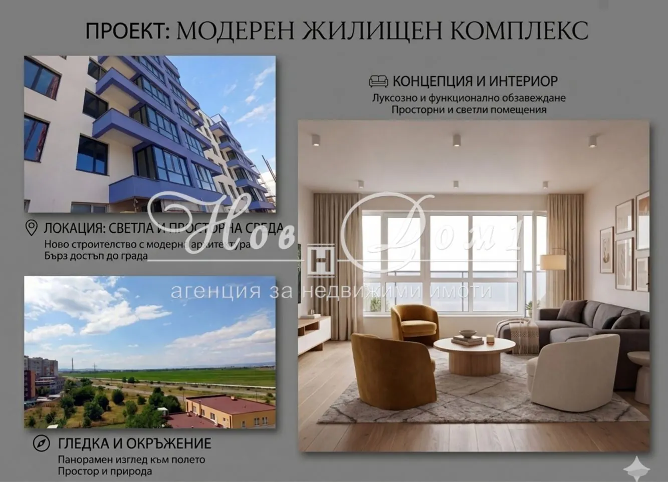 “NEW HOME 1”: The company has: “Legal Department” – performing all necessary legal and technical checks of the property, organizing all stages of the transaction until its finalization with notarial transfer of the property. “Credit Department” – assisting in obtaining a bank loan under the best possible conditions for the client, with the choice of bank determined according to the client’s needs and possibilities. “Construction-Renovation Department” – ensuring comprehensive renovation of your home if needed, at the most favorable conditions and prices.