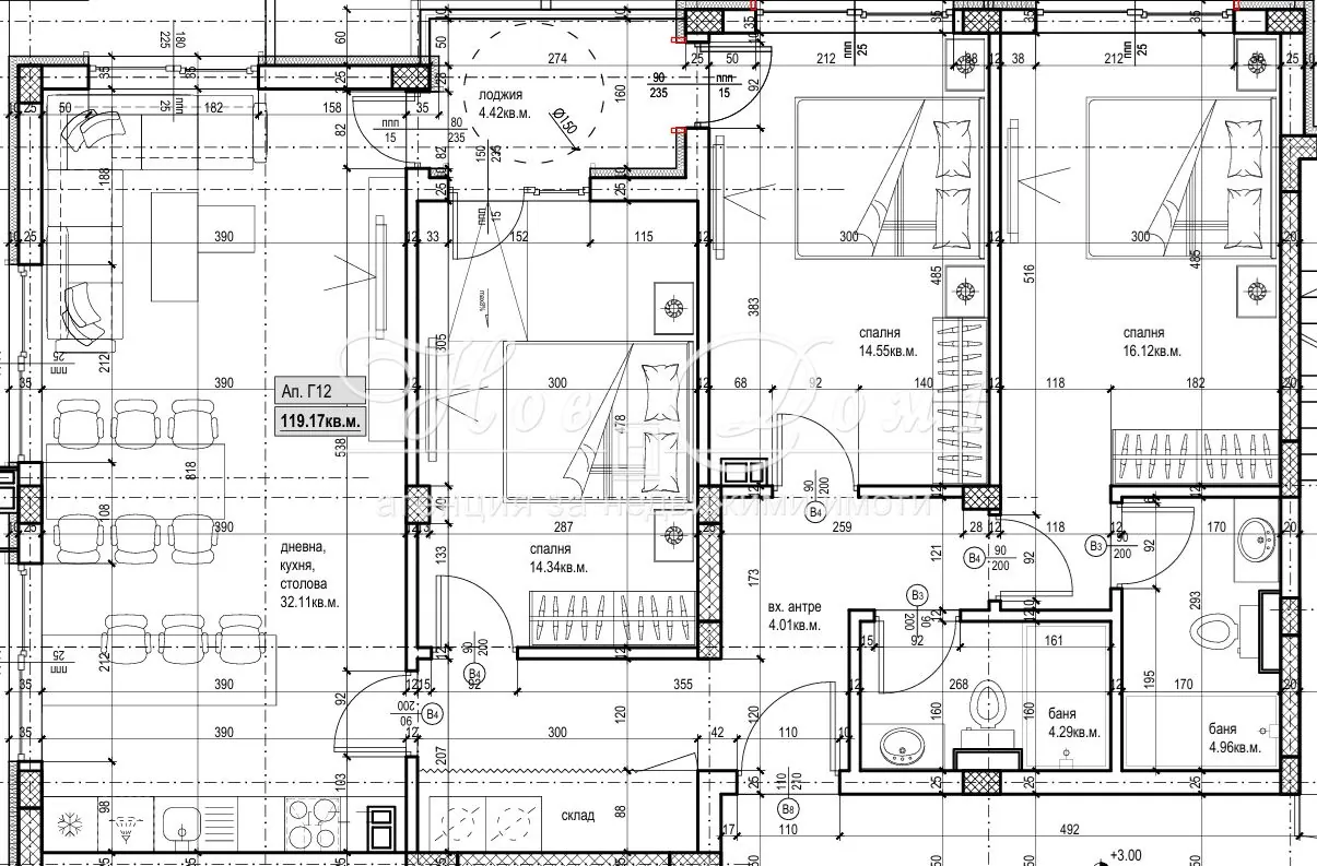 - 4-стаен апартамент с обща площ 138 кв.м (119 кв.м чиста)