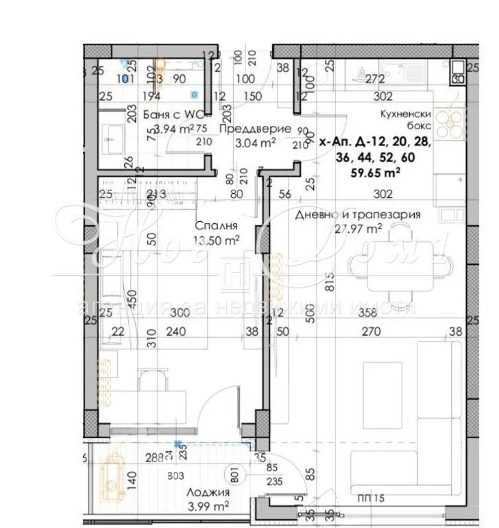 • Просторна дневна с трапезария и кухненски бокс – 27,97 кв.м