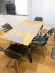 Дневна с кухн. бокс – кухня изработена изцяло по поръчка с всички нужни електроуреди, мека мебел, маса за хранене, както и маса за кафе, климатик;