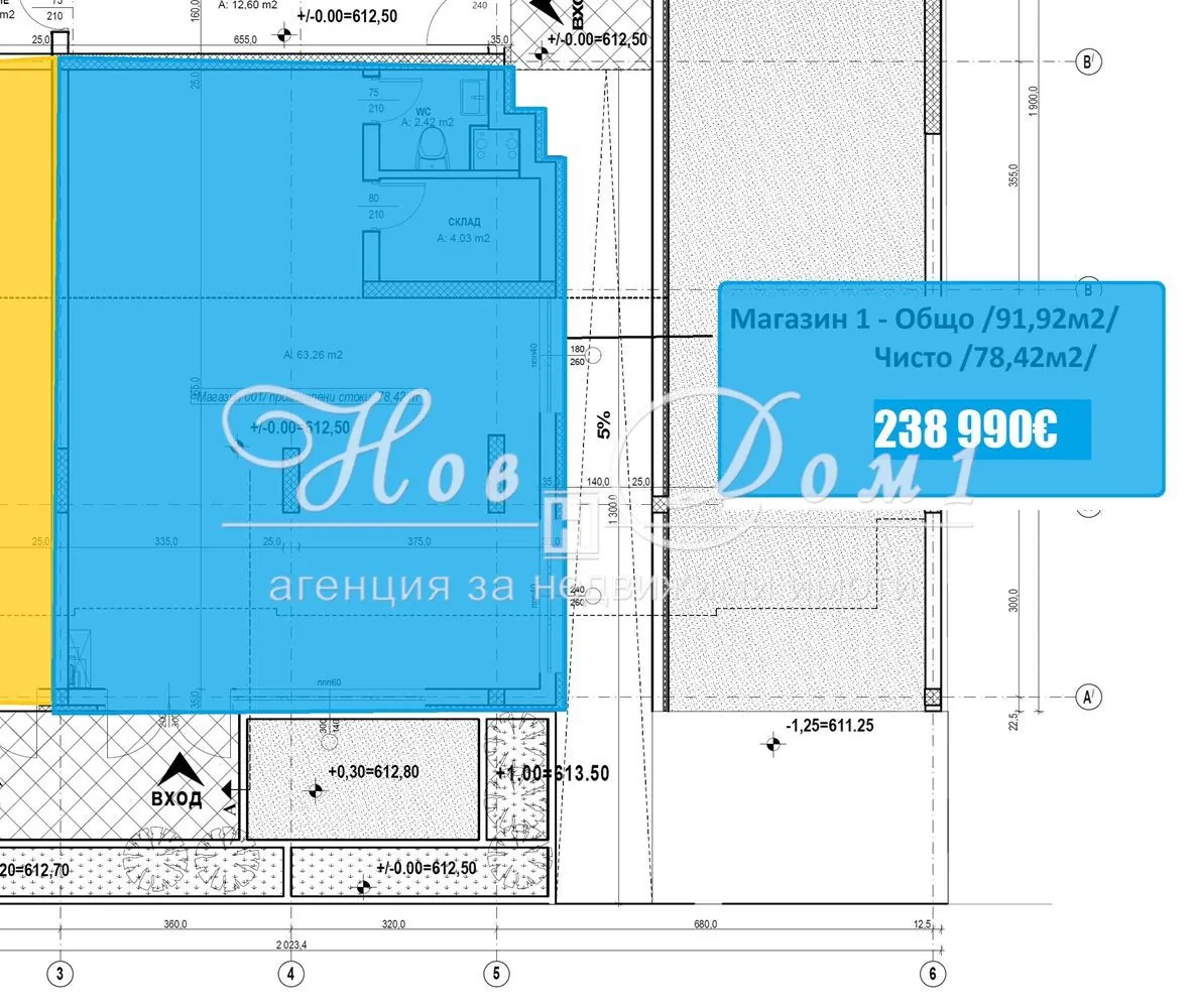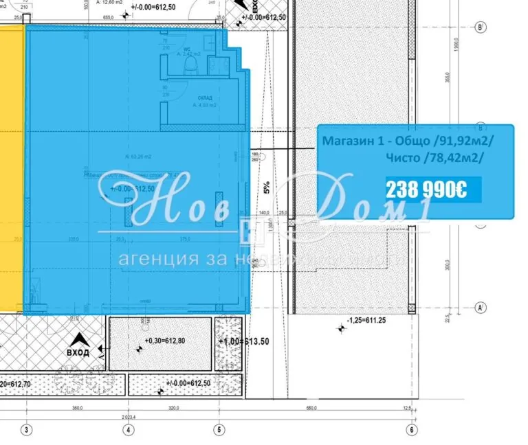 Offered is an Office/Shop suitable for your business idea! Built-up area 78m2, with common areas 92m2. It consists of a large hall with an area of 63m2, Storage, and Toilet. Northeast exposure!