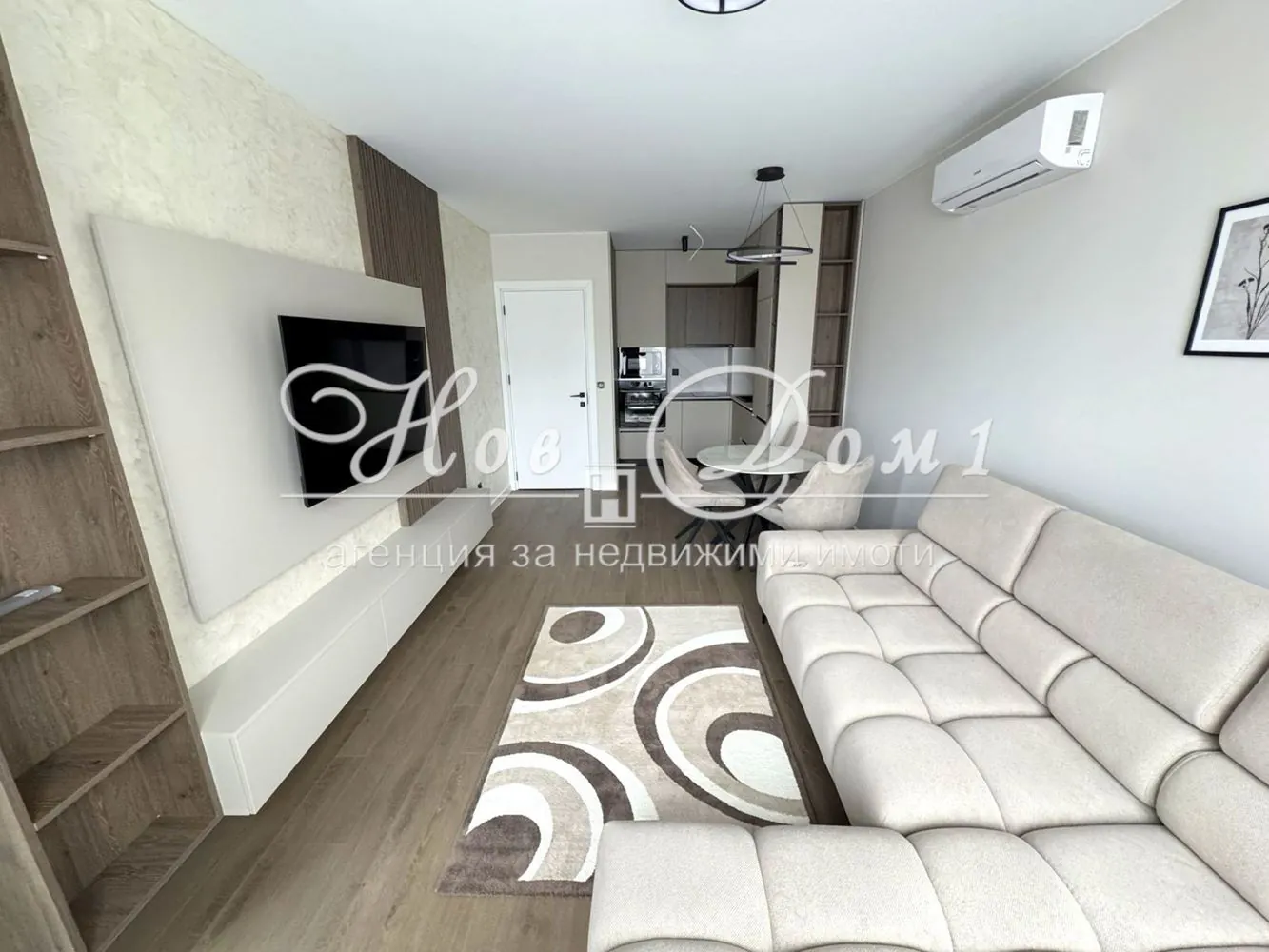 Състояние : Имотът се предлага напълно Обзаведен : гардероб в коридора; напълно оборудвана баня и тоалет; кухненски шкафове изработени по поръчка , както и всички вградени електроуреди; луксозна холна гарнитура, секция и маса за хранене в комплект с 3 броя столове. Спалня с 2 нощни шкафчета, гардероб и секция, Климати в Дневната, както и Радиатори.