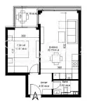 The apartment comprises: entrance Hallway, large and sunny Living Area with Kitchenette, spacious Bedroom, Bathroom and Toilet, Utility Room, Terrace, optional Parking Space. It is located in an upcoming building in the ideal center of the city, in a perfect location, on a middle floor, facing south, without shared walls and transitions, no setbacks or slopes, excellent common areas are provided, quiet elevator, designer facade elements. The property has nice shapes, easy to furnish, great for living or investment.