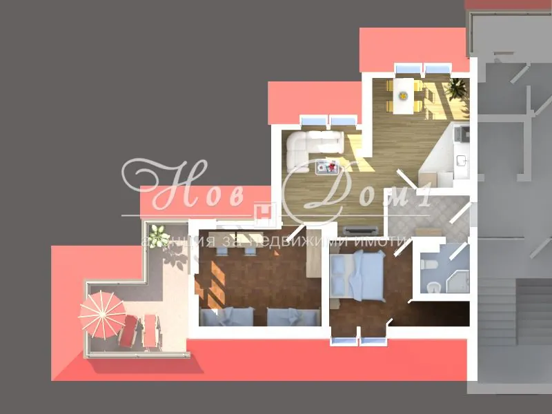 „НОВ ДОМ 1“ : Компанията разполага с : „Юридически Отдел“- извършващ всички необходими юридически и технически проверки на имота, организира всички етапи на сделката до нейното финализиране с нотариално прехвърляне на имота. „Кредитен Отдел“ – съдействащ за отпускане на банков кредит при възможно най-добри условия за клиента, като избора на банка се определя спрямо нуждите и възможностите на клиента. „Строително-Ремонтен Отдел“ – гарантиращ при нужда цялостен ремонт на вашето жилище до ключ при най-изгодни условия и цени.
