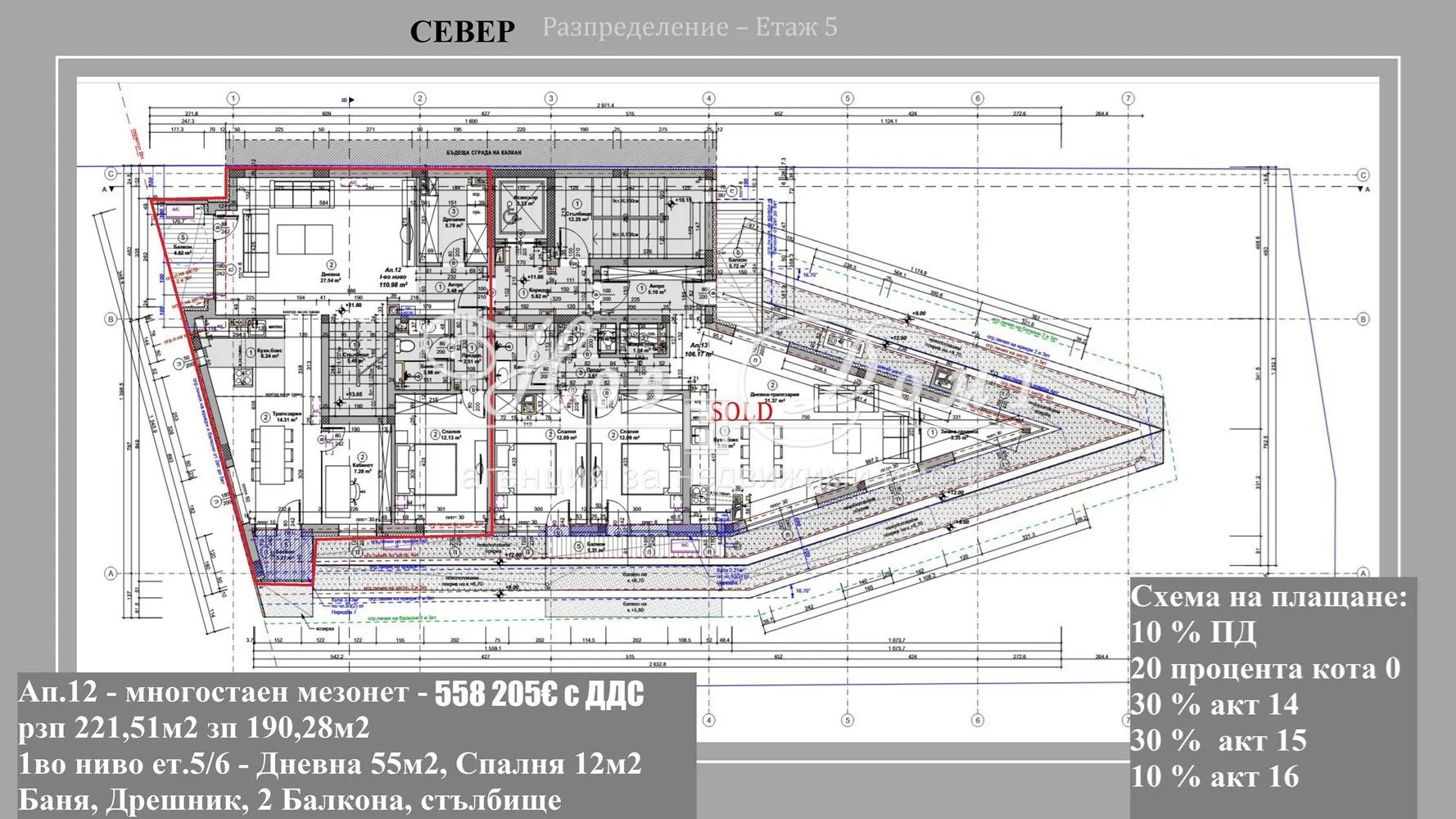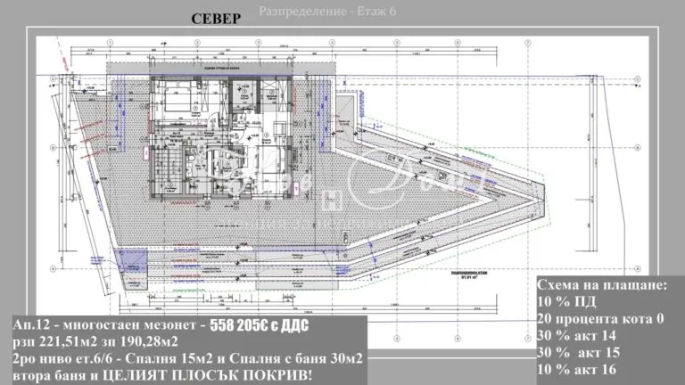 Само 10% първа вноска и Само 2514€ за кв.м. с ДДС! Пентхаус и огромна Тераса! Дневна 55м2, Спалня 30м2!