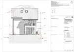 На същото второ ниво откриваме Баня + Тоалетна и Кабинет/Спалня около 8м2. По вътрешно стълбище се качваме към трето ниво, където са разположени 4 спални, 2 бани + тоалетни и 2 тераси.