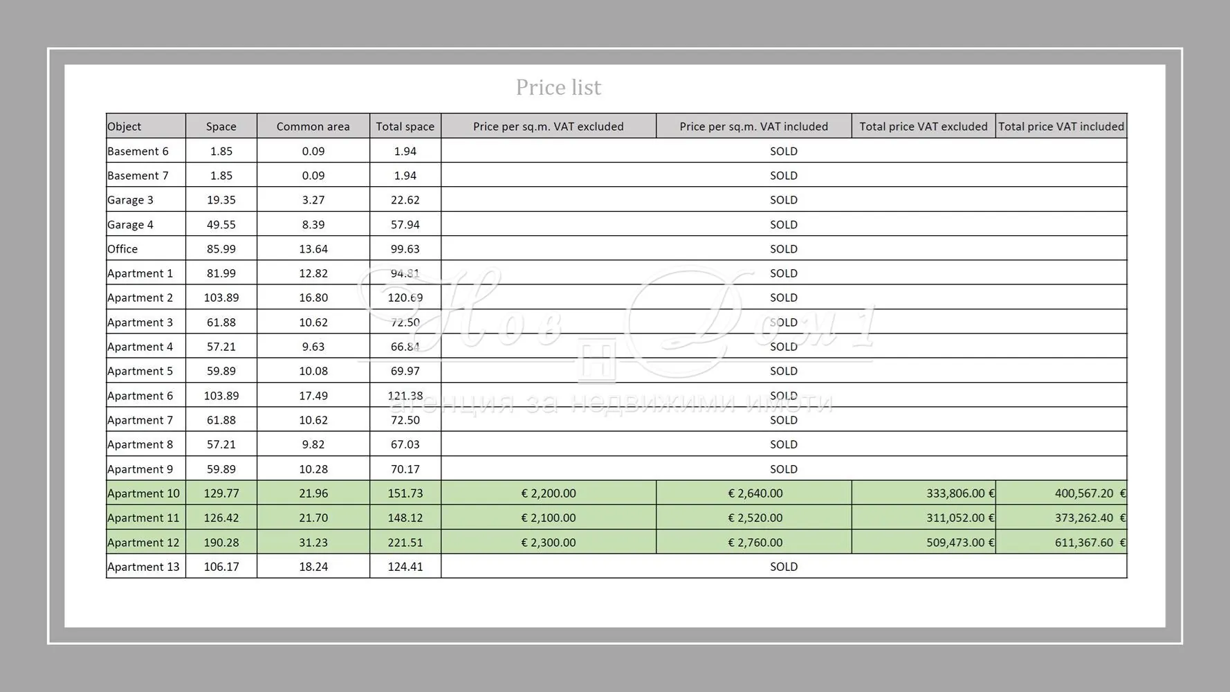 Price per sq.m: € 0 /m2
