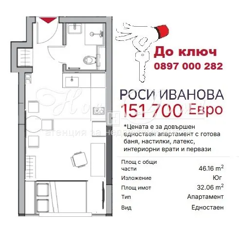 • 🏡 ТИП: ЕДНОСТАЕН АПАРТАМЕНТ