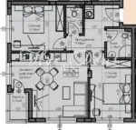 - Всичко необходимо за Тристаеан: Дневна с Кухня, две Спални, Тераса, Баня с Тоалетна и Втора Тоалетна, просторно Антре с място за Портманто/Гардероб.