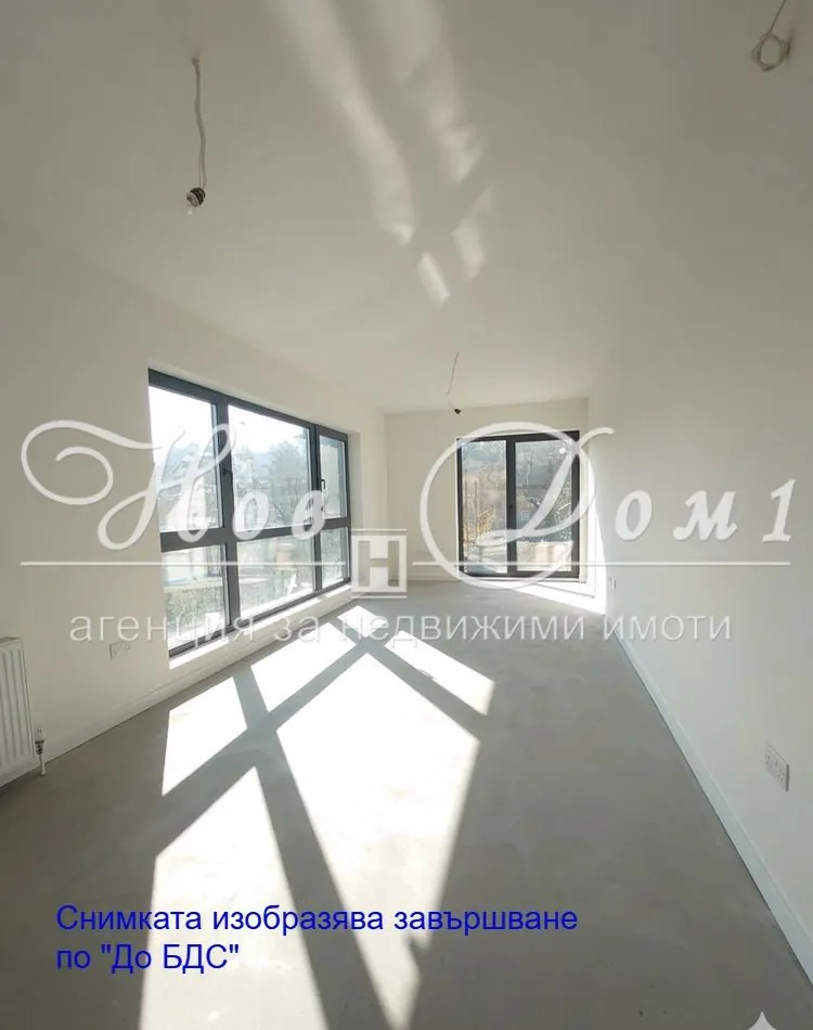 Състояние: Имотът се издава съгласно „БДС“ – Екстериорна блиндирана врата. Под : нивелирана замазка подготвена за полагане на гранитогрес, паркет или настилка по Ваш избор. Стени : машинно обработена гипсова мазилка с турбозол подготвена за боя или тапет по ваш избор. Мокри Помещения : ръчно обработена циментова мазилка подготвена за полагане на фаянс и теракота .ВиК инсталация „на тапа“. ЕЛ инсталация : контакти, ключ и фасонки.
