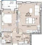 Апартаментът представлява: Обща площ е 76,09м2, от които 64,33м2 са чиста застроена площ. Дневната е южна с площ около 25м2 и изход към Тераса около 4,7м2, която е обща със Спалня около 13,26м2, отделно има Баня + Тоалет и Килер/Перално около 2,33м2.