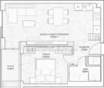 2-стаен непреходен апартамент с южно изложение. Входно антре/предверие около 4м2 с голяма всекидневна 25м2 и кухненски бокс, спалня с около 12м2 , излаз от всички стаи на тераса, баня с тоалет, дрешник или склад/мокро помещение.