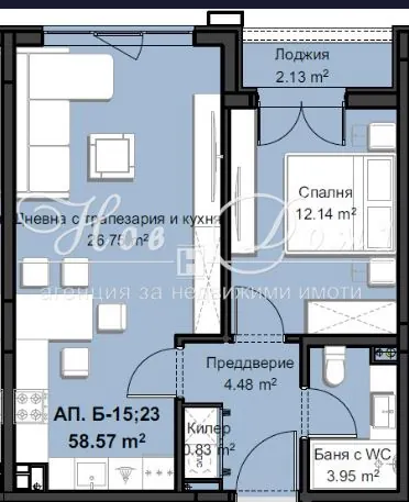 ✔ Дневна с кухненски бокс – 27м2