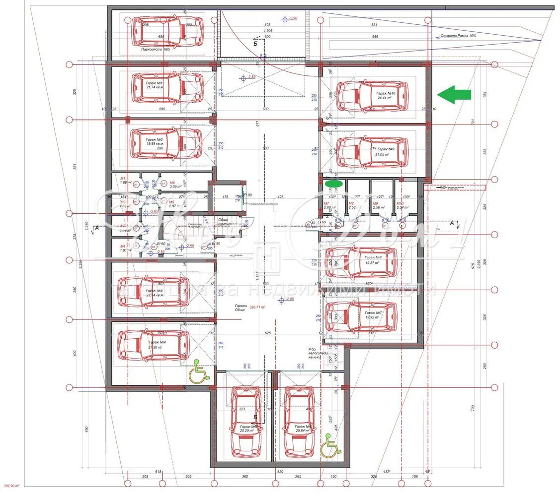 Просторен подземен гараж със застроена площ 24.41кв.м. на цена 40 000€
