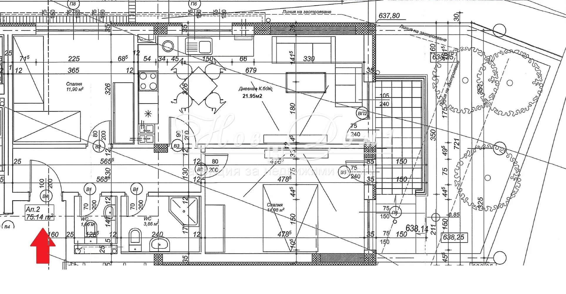 Двор към апартамента – 31,34кв.м.