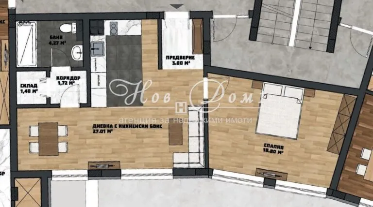 Дневна с кухненски бокс – 27.01 м²;