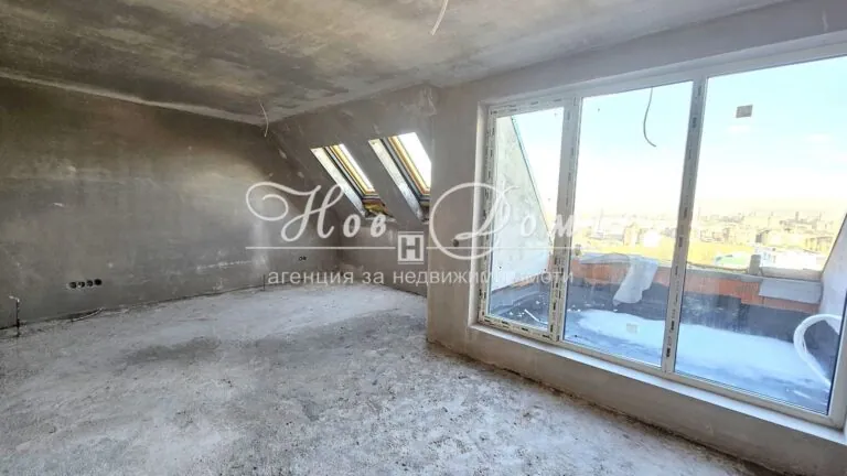 Апартаментът представлява: разкошен Четиристаен непреходен на последен етаж с невероятна гледка! Влиза се през широко входно Антре около 12 кв.м. за да достигнете до просторна Всекидневна с Кухня цели 33 кв.м.с изход към широка панорамна Тераса около 5 кв.м., три непреходни Спални, съответно с големина от 30 кв.м., 15 кв.м. и 15 кв.м., 2 санитарни помещения и допълнително Склад/Мокро помещение/Килер.