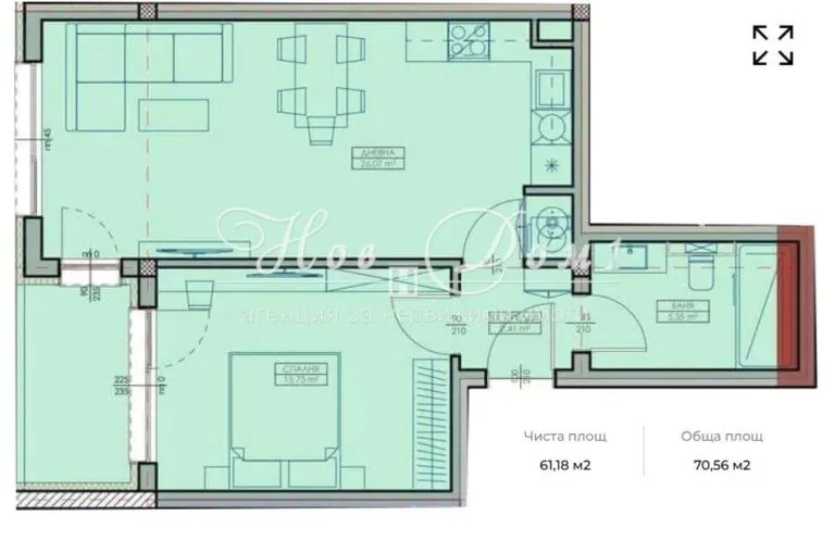 Жилището е с правилна форма. Имотът се характеризира с много светлина и функционалност.