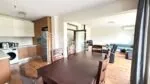Просторен дневен тракт над 50 кв.м., разпределен на зони – кухненска част, трапезария, релакс зона с мека мебел, ТВ и камина;