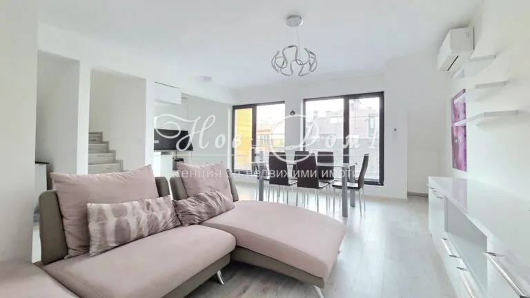 • Общата площ на жилището е 136.45 кв.м, разпределена по начин, който съчетава простор, светлина и функционалност. Имотът разполага с 3 стаи, включително 2 уютни и добре организирани спални, едната от които може да се ползва и като кабинет. Подходящи както за семейство, така и за хора, които търсят допълнително пространство за кабинет, детска стая или стая за гости.Вътрешното разпределение предлага удобна дневна зона, която е обособена като просторен хол с трапезария и кухня, създавайки приятна атмосфера за семейни събирания, почивка и посрещане на гости. Наличието на две нива придава на имота усещане за самостоятелност, стил и характер, като дава възможност за ясно разграничаване между дневната и нощната част.