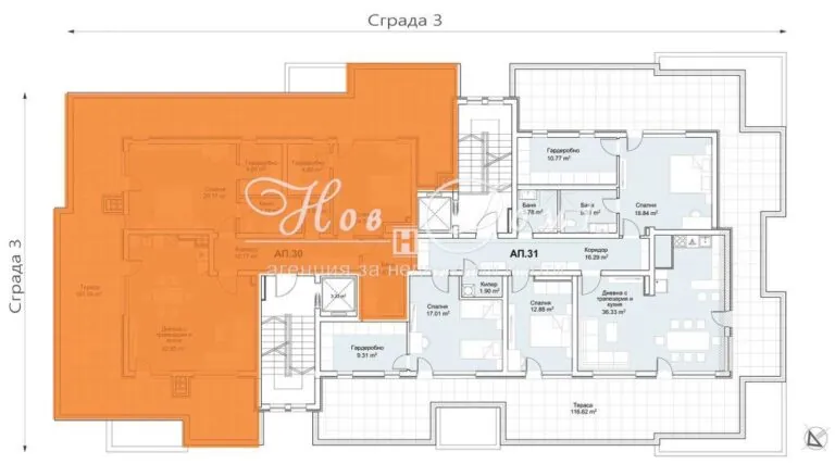 Акт 16! Тераса 100м2 +! Пентхаус в Топ комплекс! Дневна 33м2, Спалня 30м2, Спалня 20м2!