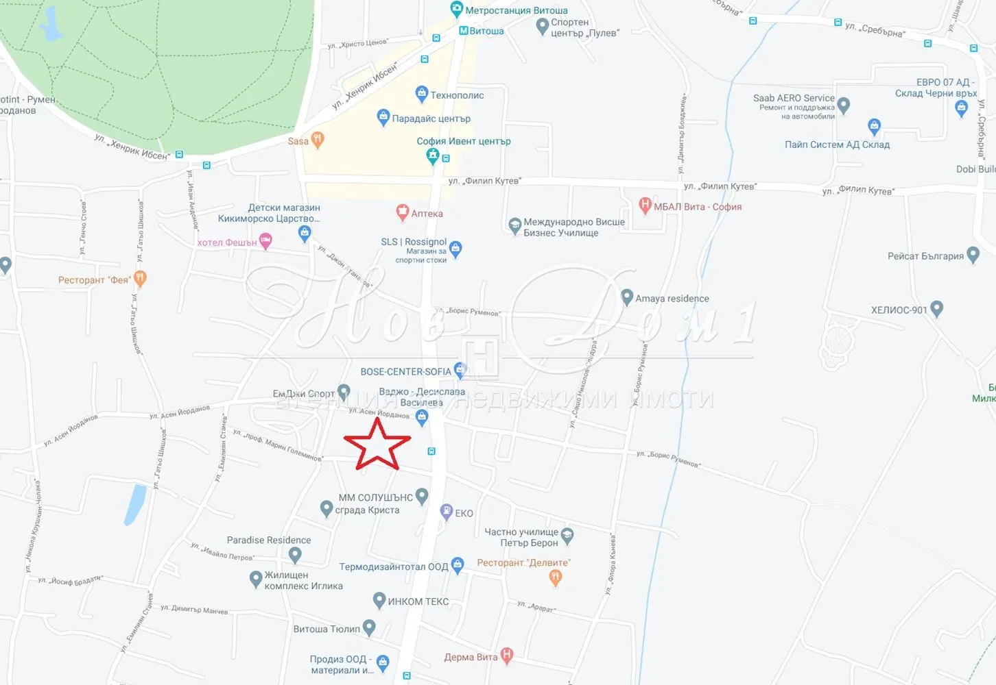 Намира се в квартал Кръстова вада, където паркирането е мисия невъзможна. Само на 100 метра от булевард Черни връх и на около километър от Южен парк и МОЛ Парадайс.
