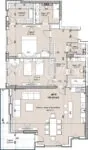 Квартира с гостиной около 25 кв.м. и двумя спальнями по 13 кв.м., террасой, 2 ванными комнатами + туалетом, а также отдельной мокрой/прачечной/гардеробной в коридоре. Находится в комплексе типа “закрытого типа” с обязательным ежегодным сбором за управление и обслуживание. Недвижимость имеет чистую площадь 92 кв.м. и общую площадь почти 111 кв.м. В комплексе расположены десять 5-этажных зданий на площади 35 дка, из которых 23 дка красивых зеленых садов, водных зеркал, 7 детских площадок, детский центр, ресторан-сад, фитнес и магазины.